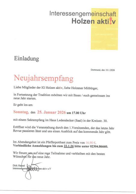 Anlässlich des 875-jährigen Bestehens des Stadtteils Holzen lädt der SPD-Ortsverein Nördliches Schwerte und Holzen zu einem besonderen historischen Rundgang ein. Holzens Ortsheimatpfleger Ferdinand Ziese nimmt Interessierte mit auf eine spannende Reise durch die Geschichte Holzens. Vom Ursprung des Ortes über gewachsene Unternehmen bis hin zur besonderen Lage zwischen Dortmund und Schwerte – der etwa einstündige Spaziergang beleuchtet die wichtigsten Stationen der letzten Jahrhunderte. Auch die Entwicklung der Dortmunder und Schwerter Ortsteile seit der Trennung vor 50 Jahren, wird thematisiert.